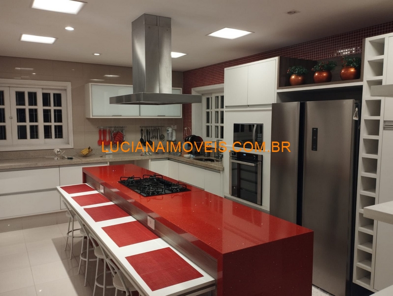 Quintal, Piscina, área gourmet com churrasqueira, salão de festas, sala de inverno, sala de estar, sala de jantar, sala de jardim, cozinha ampla, academia, depósito, garagem para 3 veículos grandes, painel solar.