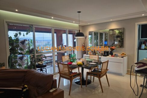 Apartamento com 130m² bem iluminado e com excelente distribuição. Possui varanda gourmet com churrasqueira integrada a cozinha planejada com belos armários, ar-condicionado, lavabo, e 2 vagas cobertas na garagem. Escritório com banheiro.